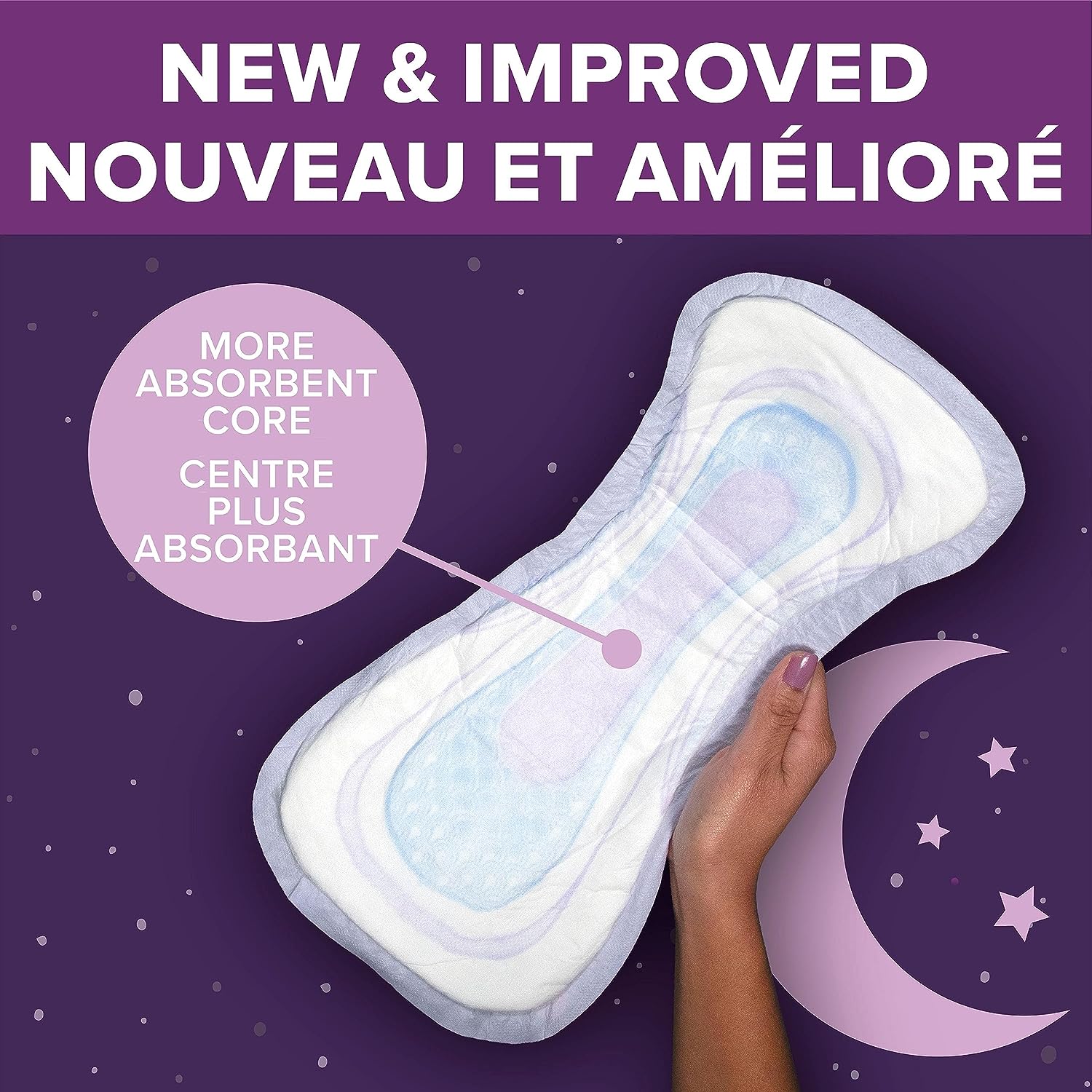 - Stay Dry: remain comfortable throughout the day and help keep wetness away from your skin with the best night time protection**—it features a 75% wider back*** and keeps you 10x drier than the leading period pad.