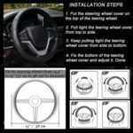 - Easy-to-install: This steering wheel cover requires hassle-free installation. Just place the cover on top of the steering wheel. Press and hold the upper part of the cover and gradually lower it with both hands on either side to tighten.